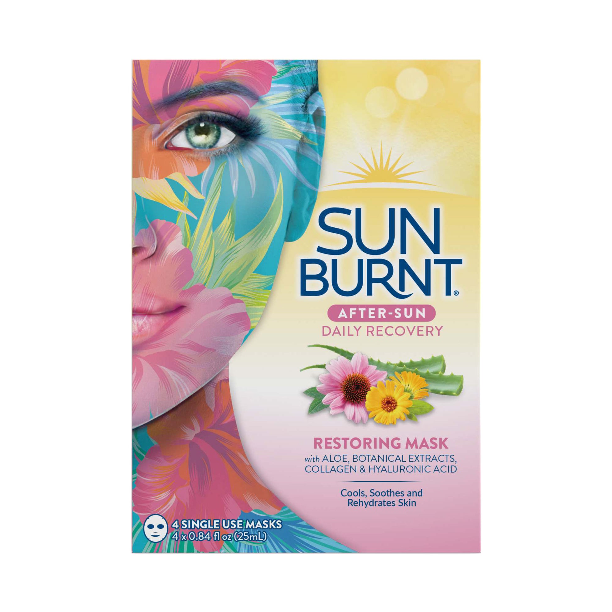 SunBurnt Sun Recovery Hydrating After Sun Facial Mask, 4-pack